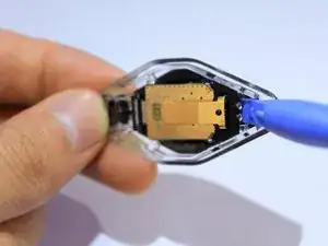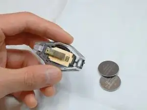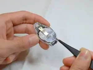 Сожмите верхний аккумулятор с помощью пинцета и оттяните аккумулятор от лампочки.