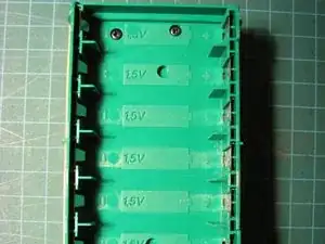 Старайтесь отвинтить правую сторону отсека для батарей от верхнего корпуса. Левая сторона будет удерживаться зажимом батареи.