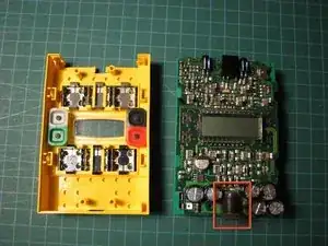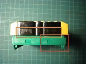 Снимите четыре винта в отсеке для батарей. Они фиксируют жёлтую верхнюю часть.