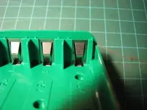 Снимите серую крышку батареи, приподняв ее спереди (около инфракрасного окна). Поднимите её под углом и снимите, чтобы открыть зеленый отсек для батарей.