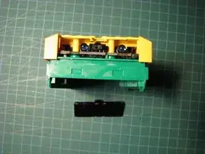 Как снять верхнюю (жёлтую) и нижнюю (зеленую) половины корпуса RCX 1.0. После снятия корпуса вы можете очистить электрические контакты и заменить любые сгоревшие электронные компоненты.