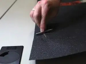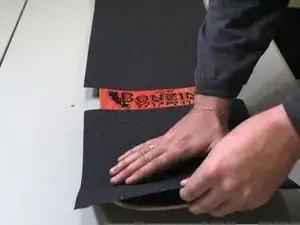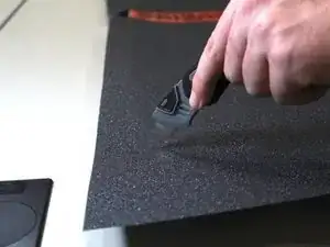 После нанесения нового коврика на деку используйте канцелярский нож, чтобы проткнуть любые образовавшиеся пузырьки воздуха.