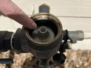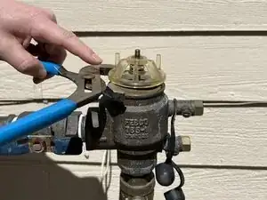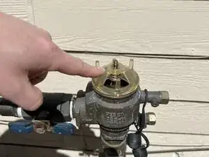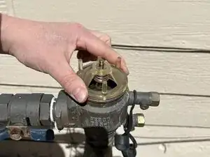 Описание: Надёжно перекройте подачу воды, закрыв запорный вентиль по подаче, прежде чем начинать любые ремонтные работы на вашем FEBCO 765-1 PVB.