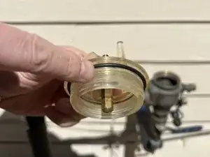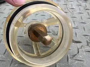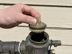 Инструкции: 1. Загляните в корпус клапана сверху (вид «с птичьего полёта»), чтобы обнаружить узел поршня, находящийся внутри камеры клапана. 2. Обратите внимание на ориентацию и положение поршня перед извлечением — зафиксируйте, какая сторона обращена вверх. 3. Аккуратно дотянитесь до корпуса клапана пальцами или, при необходимости, используйте щипцы с тонкими губками.
