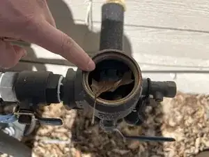 Инструкции: 1. Осмотрите внутреннюю часть корпуса клапана и выявите видимые загрязнения, такие как листья, ветки или осадок. 2. Удалите мелкие загрязнения, песок или частицы, которые могут помешать надлежащему уплотнению. 3. Дайте внутренней поверхности корпуса высохнуть или аккуратно вытрите насухо чистой тряпкой перед сборкой.