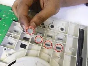 Осторожно удалите пластиковые крышки кнопок, как показано.