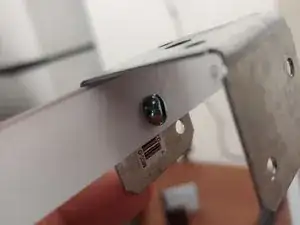 Используйте отвертку Phillips #00, чтобы удалить два винта, закрепляющих крюк двери на щите.