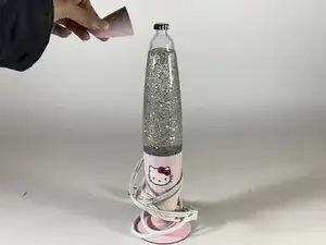 Снимите розовую крышку с лавовой лампы, просто приподняв ее, и сделайте то же самое с бутылкой.