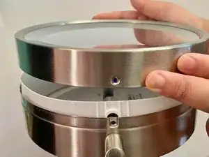 Удалите два винта диаметром 2 мм по бокам кольцевого зеркала (по одному с каждой стороны), используя отвертку Phillips #00.