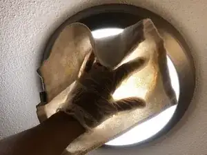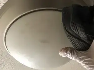 Когда плафон начнёт смещаться, вращайте его против часовой стрелки в перчатке до полного снятия.
