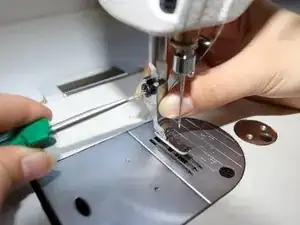 Поверните ручку на правой стороне машины, чтобы поднять иглу вверх.