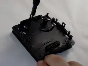 С помощью инструмента для вскрытия приподнимите каждый из пяти язычков, чтобы разделить две половины Petcube 2.