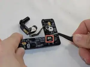 Пинцетом или пальцами аккуратно вытяните кабель из гнезда и снимите лазерный модуль с платы.
