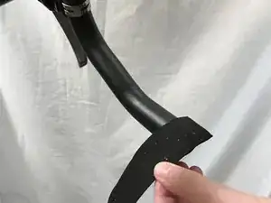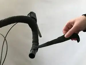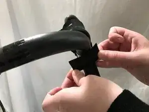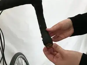Начните плотно обматывать ленту по рулю, натягивая её вверх и по направлению к велосипеду.