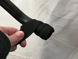 Снимите клейкую подложку с двухдюймового кусочка и приклейте его на руль за хомутом тормозного рычага.