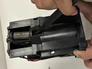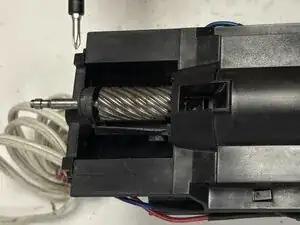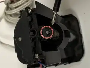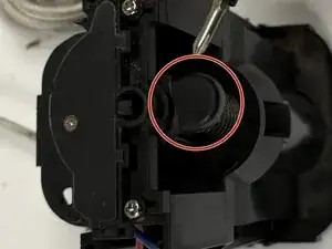 Сдвиньте белую крышку вверх вдоль механизма и снимите её. Это откроет механизм лезвия и проводку в задней части точилки.