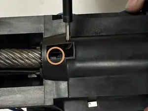 Тем же Phillips-отвёрткой подденьте стержень, упирая отвёртку в место, где стержень лежит под металлической пластиной, и слегка подвиньте стержень вверх.