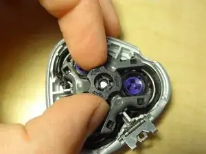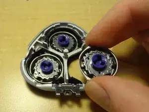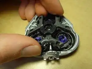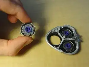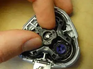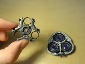 Установите новые лезвия, убедитесь, что сторона с двумя вставками направлена к центру головки.