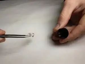 С помощью пинцета вытяните сборку лезвий из наконечника триммера.