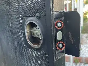 Вкрутите оба коротких винта в панель справа от задвижки.