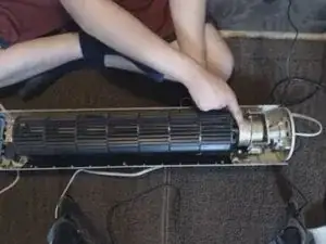Осторожно раскройте корпус вентилятора пополам, оттянув переднюю и заднюю части друг от друга. Теперь вы должны увидеть двигатель, соединённый с лопастью вентилятора.