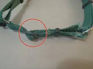Убедитесь, что отремонтированная шлейка подходит по размеру. Светло-зеленая секция — новая часть.