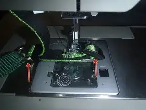 Это изображение размыто. Извините. Оригинальная шлейка была прошита узорами «X», но ограничения моей швейной машины не позволили сделать это, поэтому я прострочил тремя прямыми швами «I».