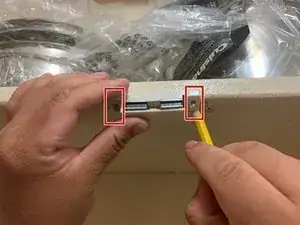 Вкрутите два винта 10 мм в новую магнитную защёлку с помощью крестовой отвёртки Phillips #0, чтобы закрепить её на месте.