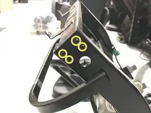 Снимите 2 болта и шайбы, которые крепят подлокотник к каркасу.