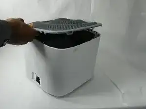 Сожмите зажим на задней панели нижнего корпуса и отведите панель от корпуса, обнажив воздушный фильтр.