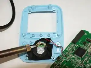 С помощью паяльника удалите провода от динамика на передней панели ручного монитора.