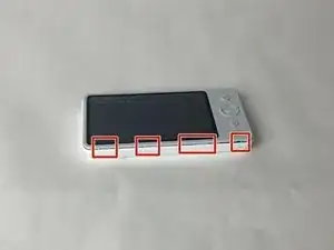По два винта на каждом конце дисплея и по одному на каждом его длинном боку.