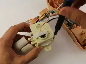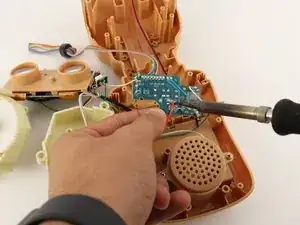 Многие части Teddy Ruxpin управляются основной материнской платой. Если проблема с медведем заключается не в простой заменяемой детали, возможно, пришло время заменить материнскую плату. Потребуется выпаивание, поэтому обязательно ознакомьтесь с руководством по выпаиванию. Для доступа к материнской плате также потребуется отвертка Phillips #1.