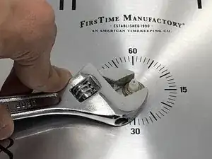 После удаления всех стрелок используйте ключ на 11 мм, чтобы открутить в контрактном направлении резьбовую гайку в центре часов.