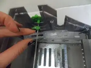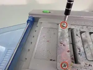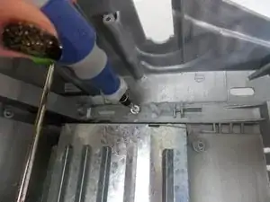 Удалите 2 винта (длиной 0,75 см), которые в данный момент удерживают металлический плавильный лоток с помощью отвертки Phillips #2.