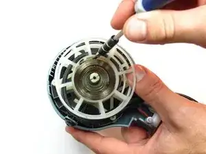 После снятия спирали открутите три винта Phillips #2 длиной 11 мм, расположенные под ней, чтобы извлечь колесо втягивания.