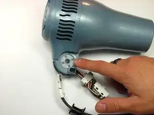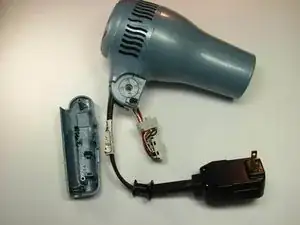 После того как три винта будут удалены, снимите заднюю крышку фена, покачивая её, пока она не выйдет из зацепления. Это не должно потребовать больших усилий.