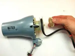 Снимите белую внутреннюю дисковую деталь с основания головки фена, аккуратно потянув её пальцем за край.