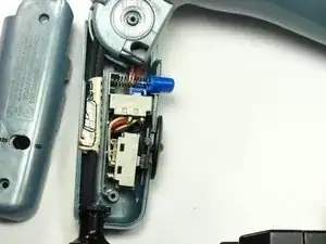 Аккуратно извлеките коричневые блоки (блок питания), покачивая их, чтобы освободить место для снятия задней части ручки. Отложите блоки в сторону.