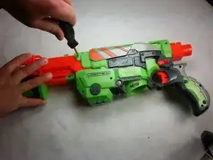 Начните с извлечения всех винтов корпуса пистолета. Используя отвертку PH #00, открутите все четыре винта длиной 1,3 см в насосе.