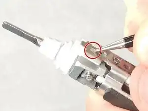 Используйте пинцет с тонкими жалами, чтобы нажать внутрь белые пластиковые фиксаторы и освободить насадку от внутренних компонентов.