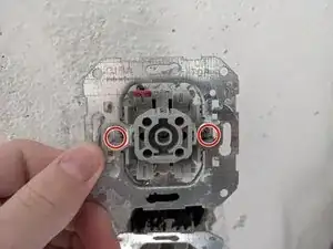 Если выключатель установлен в монтажной коробке с полостью стены, Вы можете вынуть его, ослабив два винта по периметру и повернув выключатель до совмещения двух отверстий‑ключей.