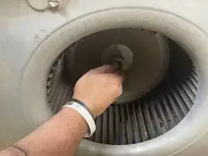 Убедитесь, что лопасти вентилятора свободно вращаются перед продолжением работ.