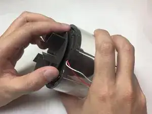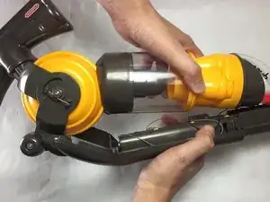 Отделите отсек батареи от цилиндра шара и шариков, сдвинув шар пылесоса в сторону от отсека батареи.