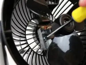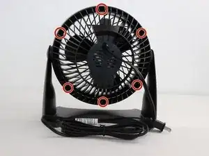 Используя крестовую отвертку Phillips #1, отвинтите шесть винтов длиной 15 мм на внешнем кольце задней части вентилятора, удерживающих корпус вместе.