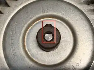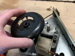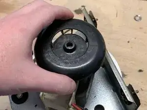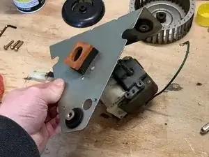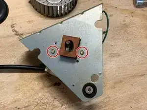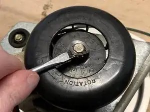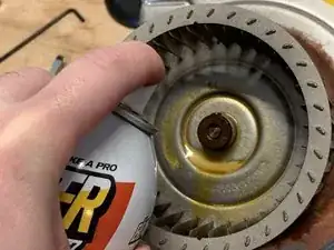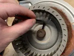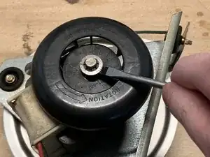 Переверните узел и используйте шестигранник 1/8 дюйма, чтобы ослабить установочный винт, фиксирующий рабочее колесо вентилятора на валу привода мотора.