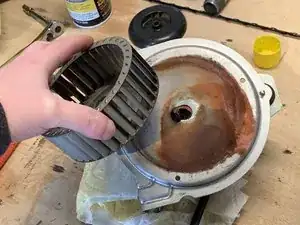 Снимите рабочее колесо вентилятора с вала привода мотора.