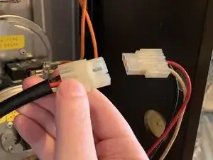 В вашей модели котла может использоваться индуктор тяги с двумя небольшими разъёмами непосредственно на моторе вместо одного коннектора Molex.