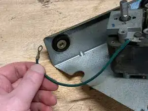 Обратите внимание на провод заземления мотора, который подсоединён к одному из болтов кронштейна. Обязательно подсоедините его при сборке обратно.