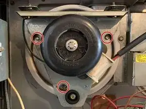 Используйте головку 1/4 дюйма, чтобы выкрутить три монтажных болта, фиксирующих узел индуктора тяги к котлу.